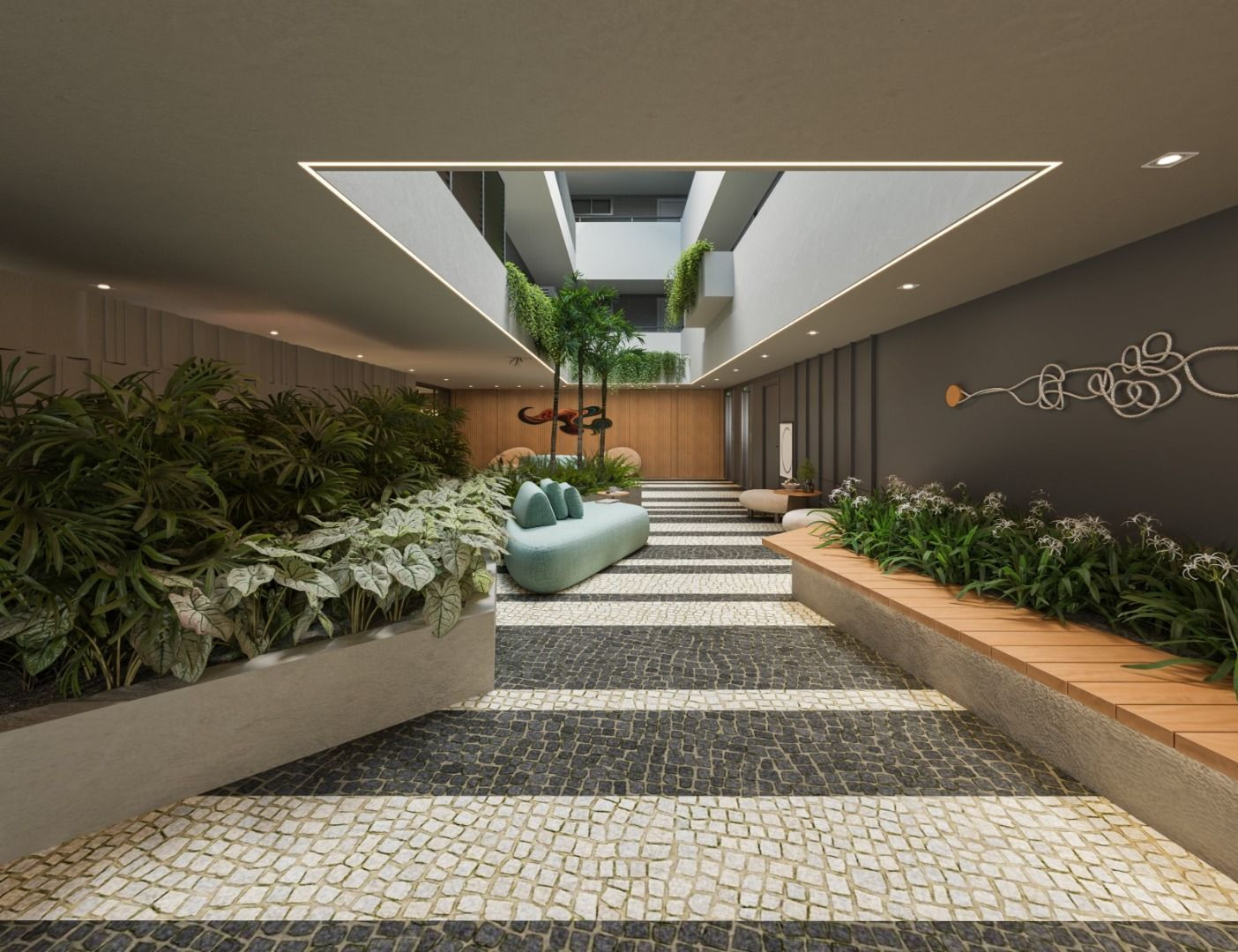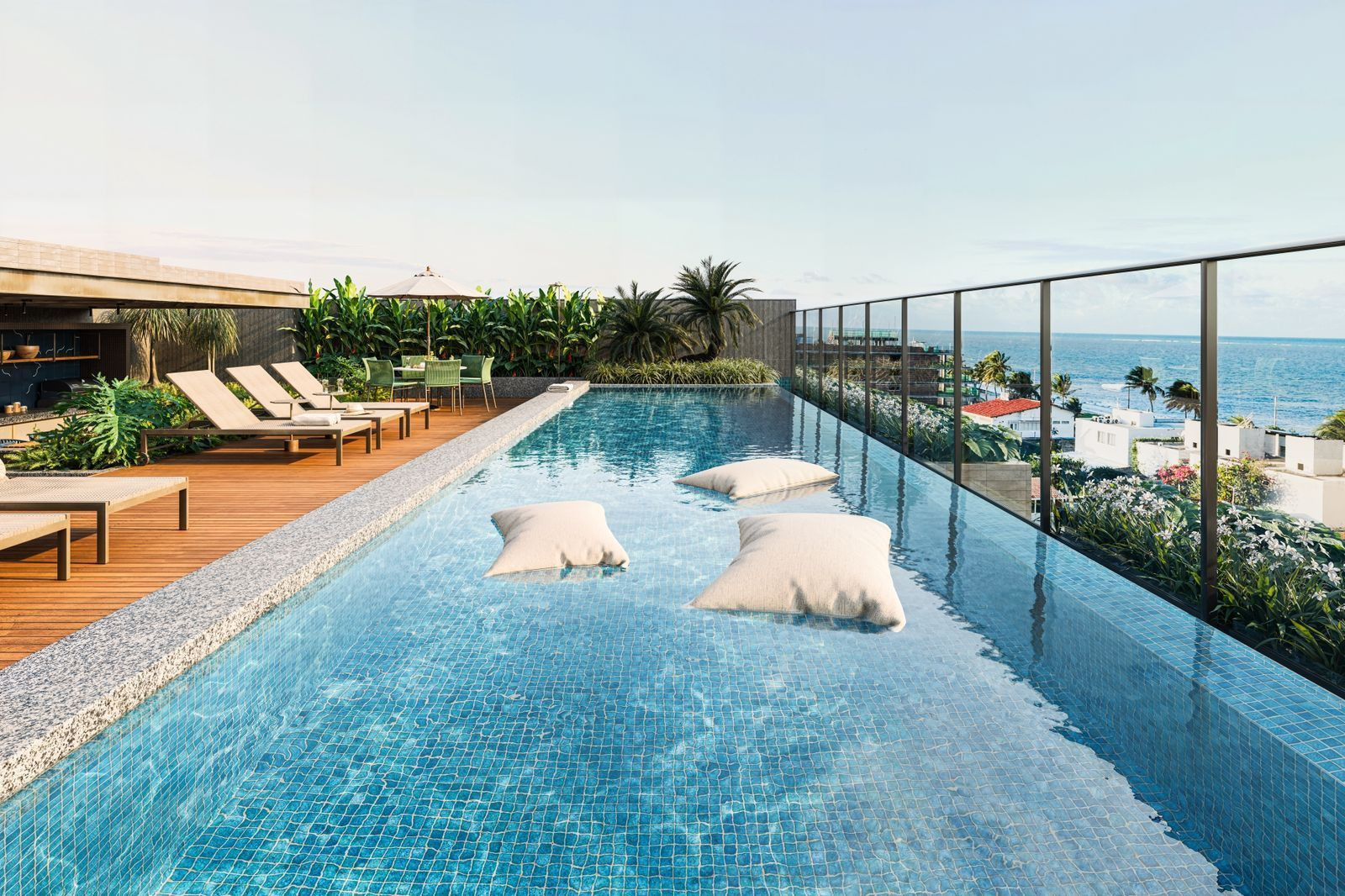 Prédio com 52 unidades, 88 vagas de garagem, torre única, lobby, área externa, eclusa, academia, área gourmet, guarderia, mini market, piscina frente mar com borda infinita, hall de elevador, deck, churrasqueira, terraço, deck, hidro, espaço gourmet, academia, recepção, átrio, jardim, ducha - aptos com 39,89m², 64,45m², 71,48m², 78,99m², 87,04m² e 96,51m², coberturas com 172,68m² e 224,19m² - Entrega prevista para Agosto de 2029 - CRECI - 1386 J - R-004-053848.