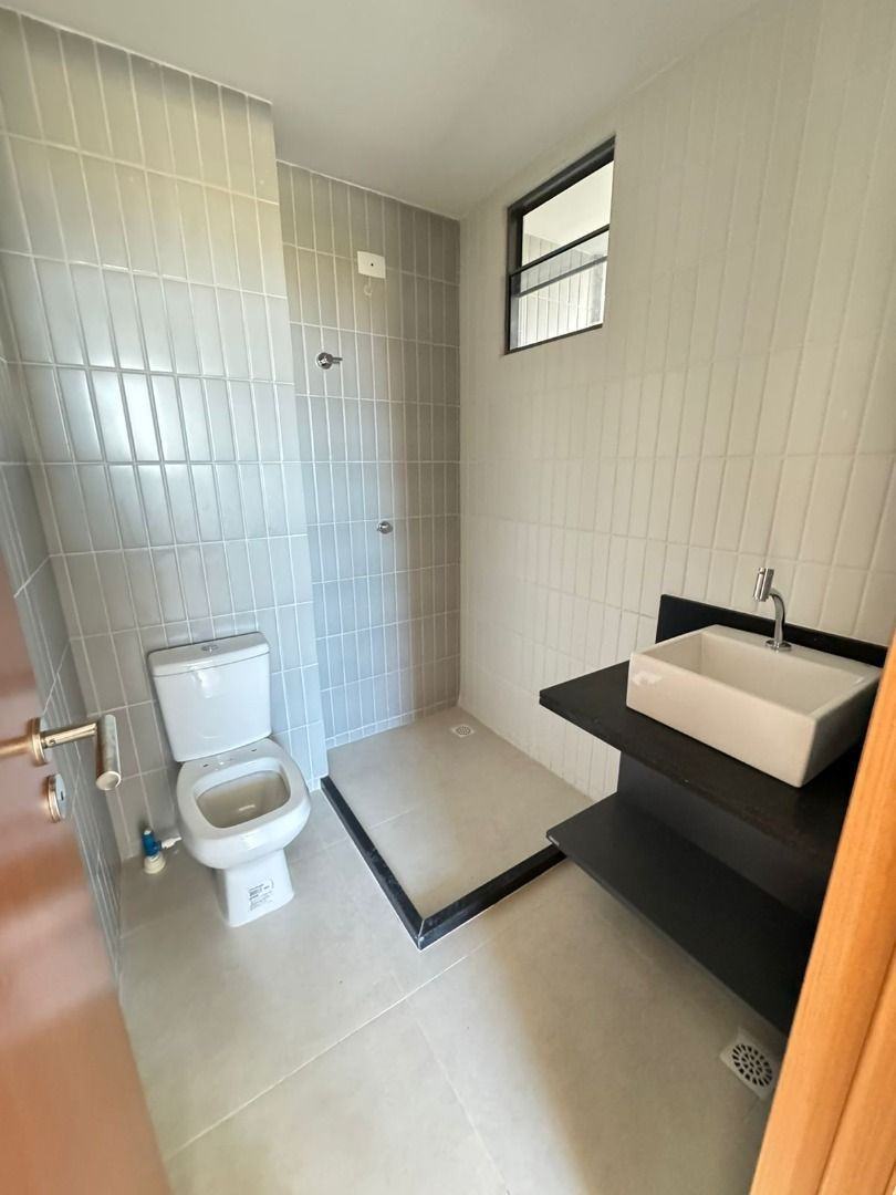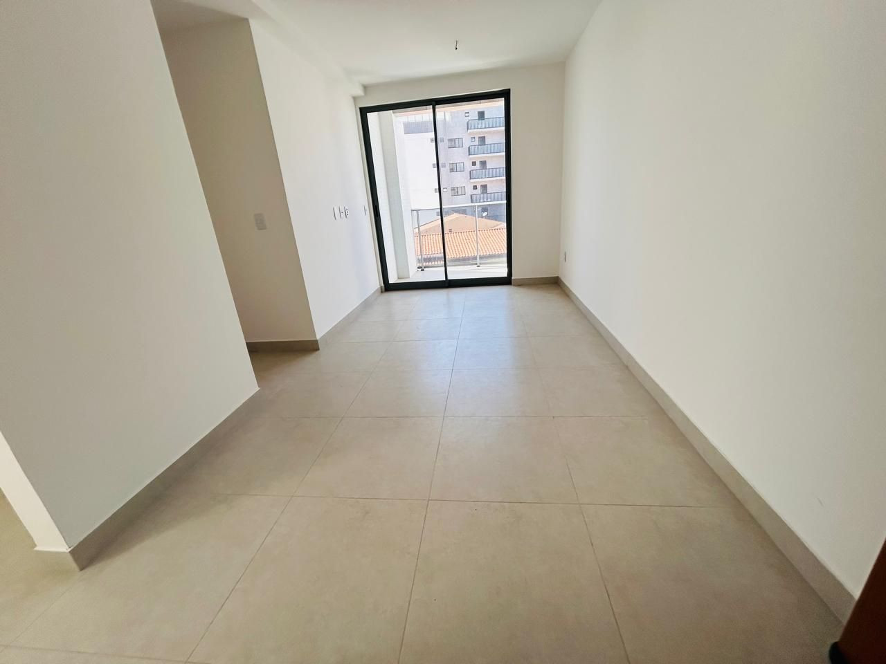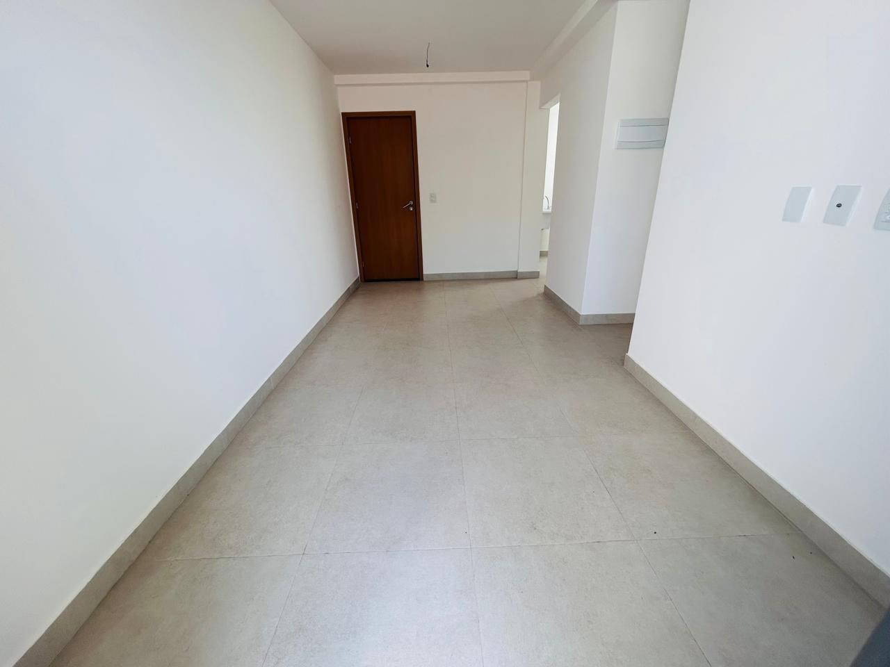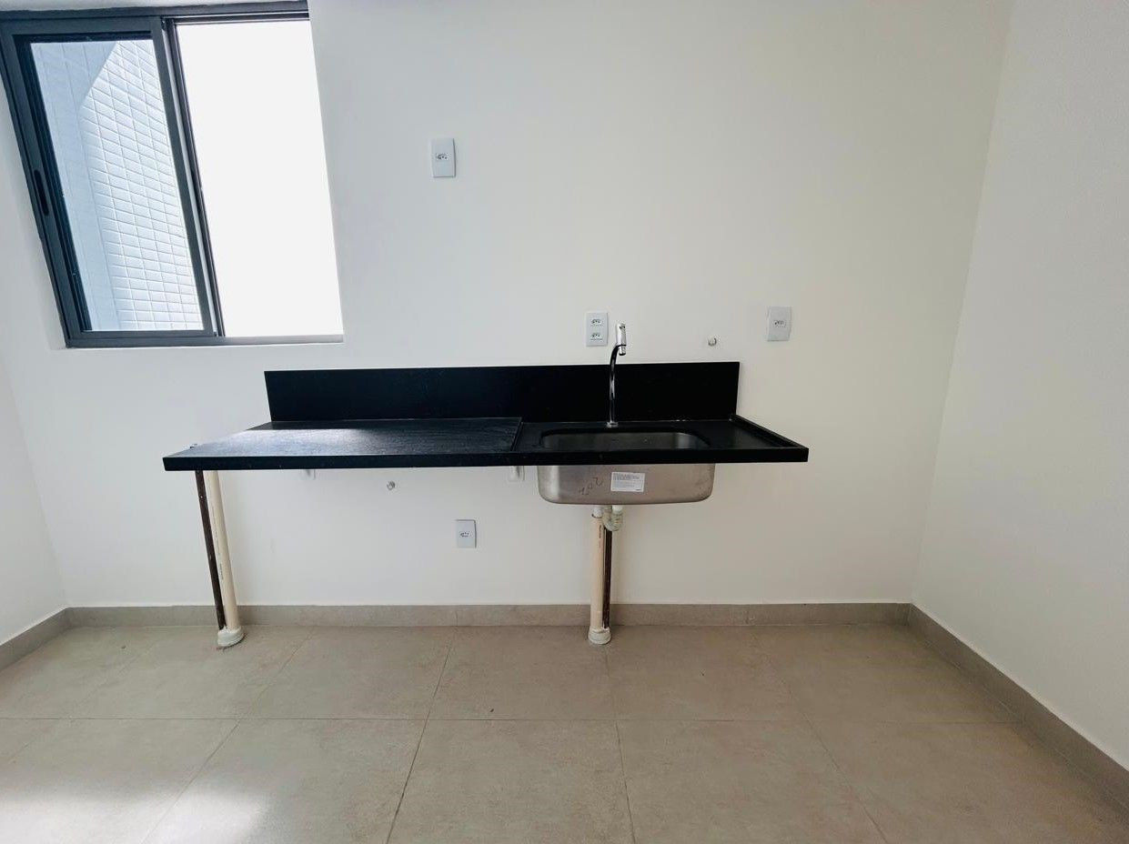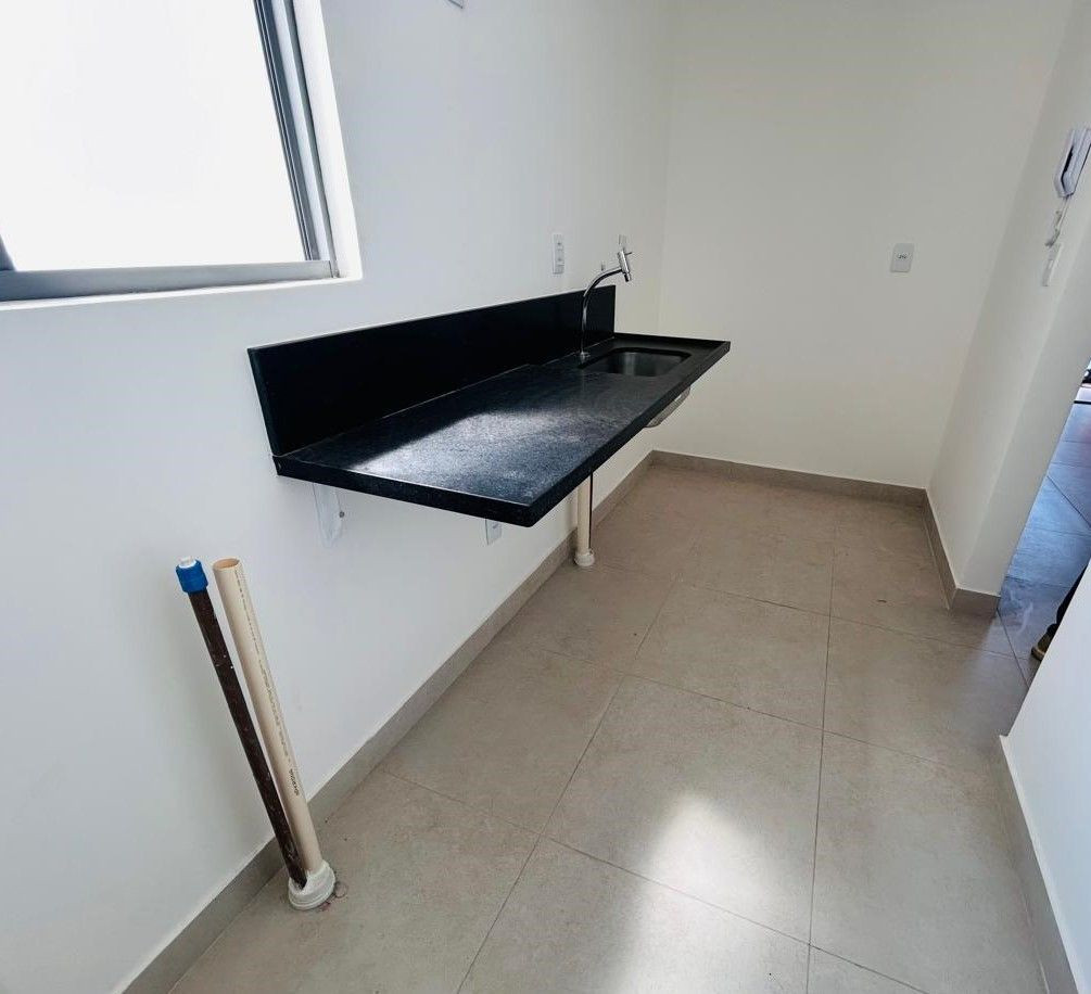 Apartamento com varanda, 02 quartos sendo 01 suíte, sala, cozinha c/área de serviço, WC social e 01 vaga de garagem.