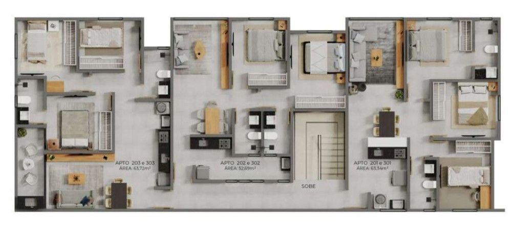 Apartamento com 02/03 quartos sendo 01 suíte, sala estar/jantar, WC social, varanda, cozinha, área de serviço, 01 vaga de garagem. Prédio com solarium na cobertura, entrega prevista para Fevereiro de 2025 - CRECI-1367-J.