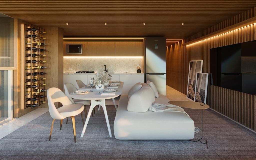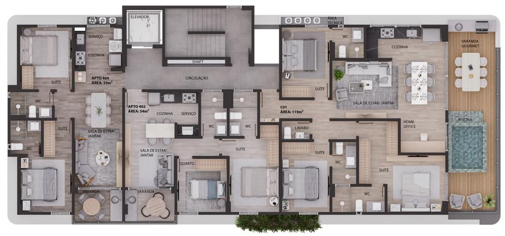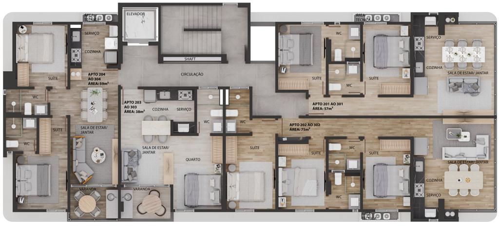 Apartamento com 02 suítes, sala estar/jantar, WC social, cozinha, área de serviço, 01 vaga de garagem. Prédio com salão de festas, piscina, churrasqueira, elevador - Entrega prevista Abril de 2026 - CRECI-1367J.