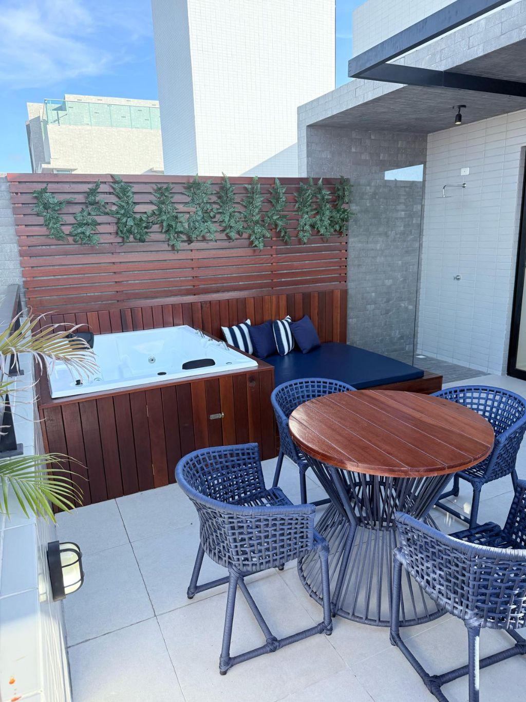Apartamento duplex com 02 quartos sendo 01 suíte, WC social, sala estar/jantar, cozinha, área de serviço, 01 vaga de garagem. Apto com área externa de 26m², hidromassagem, a 600 metros da praia, (venda porteira fechada - tudo novo) - CRECI-1367J.