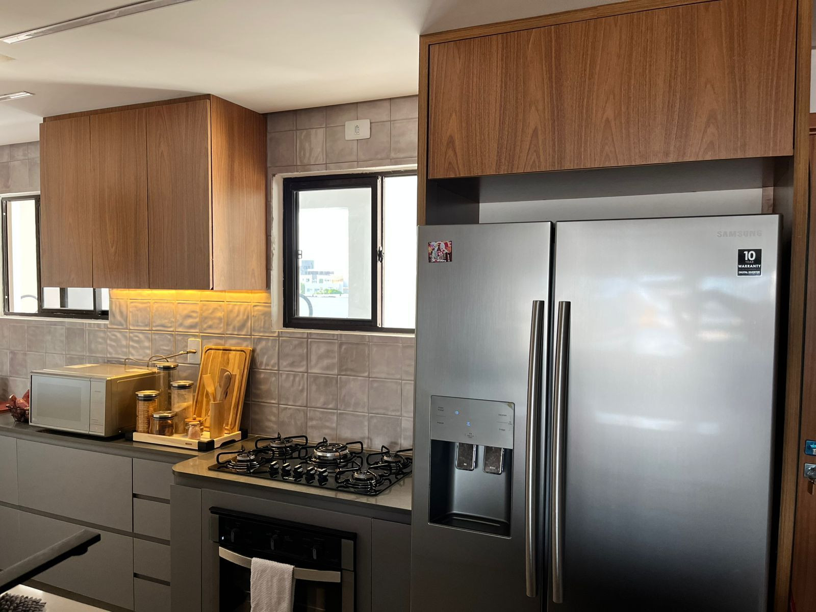 Apartamento com 02 quartos sendo 01 suíte master, sala estar/jantar, WC social, varanda, cozinha americana, área de serviço, 01 vaga de garagem. Cobertura duplex com rooftop privativo com SPA e churrasqueira, piso em porcelanato 100x100, sala com pé direito duplo, revestida em MDF amadeirado, iluminação é 100% Stella, cozinha americana equipada com bancada de quartzo, cooktop Consul de 5 bocas e forno elétrico de embutir Consul de 80l, móveis planejados, iluminação LED, lavanderia, com bancada de mármore e máquina lava e seca LG, com planejados e cerâmica Portobello, suíte master, ambos climatizados com ar condicionado inverter (Samsung 9000 BTUs e LG 12000 BTUs), piso vinílico amadeirado e armários planejados, suíte conta ainda com uma confortável cama king-size e um box do piso ao teto no WC, 3 banheiros, todos com bancadas de quartzo, revestimentos Portobello e iluminação planejada, porta de entrada possui fechadura inteligente com digital, tag, senha e aplicativo, Smart TVs LG de 60" e 55", além da geladeira side-by-side Samsung com água e gelo, estão inclusas, configurando um imóvel "porteira fechada" de alto luxo, rooftop privativo com 116m² de área total com espaçoso SPA de hidromassagem aquecido para 04 pessoas, amplo deck em madeira angelim pedra (5x2,5x1m), área gourmet em granito para 10 pessoas, e uma churrasqueira a carvão em alvenaria e inox com espetos giratórios elétricos - venda porteira fechada - CRECI-1367J.