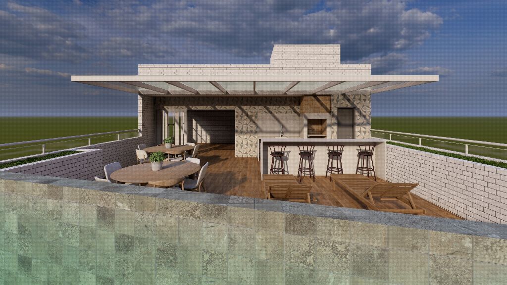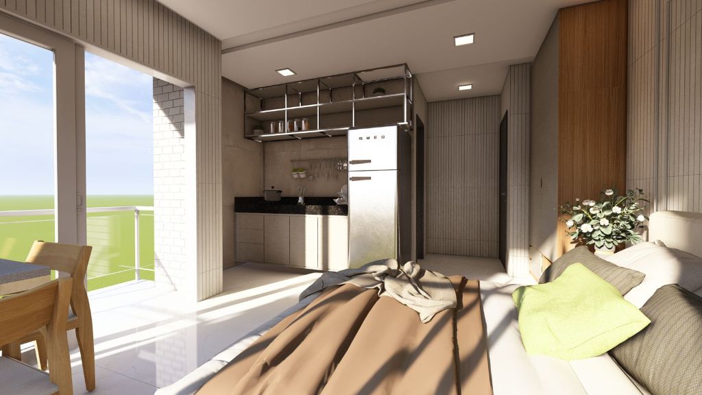 Apartamento com quarto, sala, banheiro social, cozinha, área de serviço, varanda, vaga de garagem rotativa. Prédio com piscina, salão de festa, elevador, restaurante, espaço gourmet, revestimento em pastilha - CRECI-1367-J.