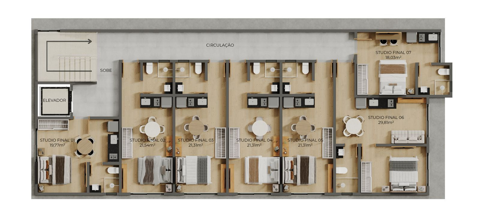 Apartamento com 01 quarto, sala, WC social, cozinha, área serviço, 01 vaga de garagem rotativa. Prédio com piscina, elevador, área gourmet - Previsão de Entrega Dezembro de 2027 - Creci-1367J.