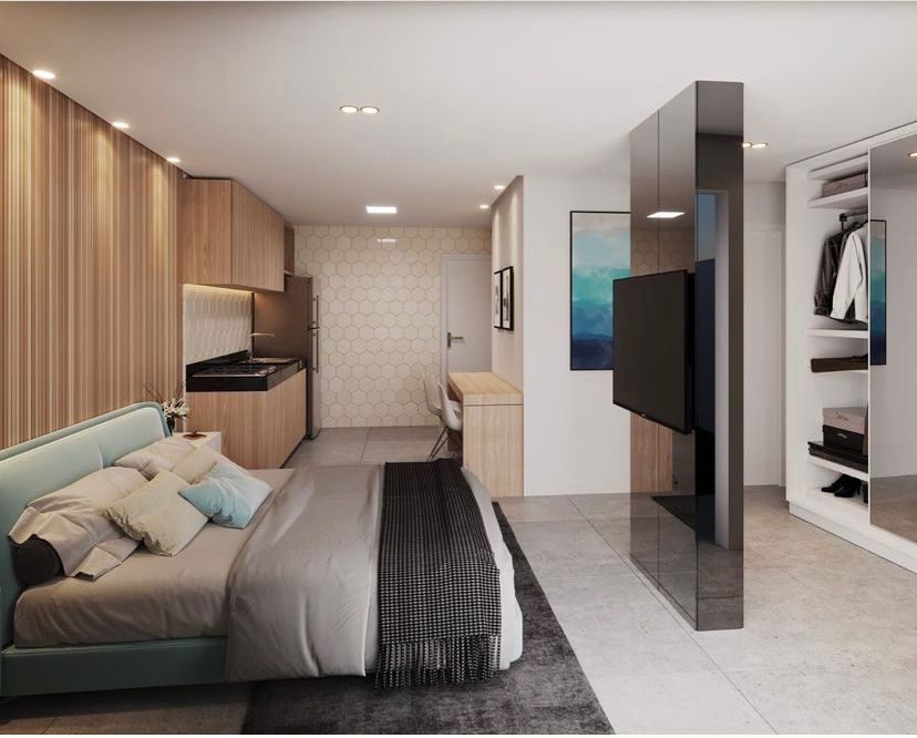Apartamento com 01 quarto, sala, WC social, cozinha, 01 vaga de garagem rotativa. Prédio com recepção, mini market, academia, restaurante, open café, air fitness, espaço beleza, lavanderia completa, espaço kids, pub, piscina com borda infinita, mirante, salão de festas, elevador, a 50 metros do mar. Entrega prevista para Dezembro de 2027 - CRECI - 1367-J.